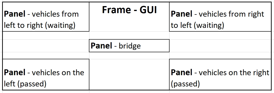 class Vehicle extends Thread{ boolean lr; Bridge b; String name; static int num; Vehicle(boolean lr, Bridge b){ this.lr=lr; this.b = b; name = "V "+ ++num; b.addGV(this); super.setName(name); if(lr) { System.out.println("new Vehicle on the left: "+ name); } else { System.out.println("new Vehicle on the right: "+ name); } } public void run(){ b.takeB(lr); try { Thread.sleep(5000); } catch (InterruptedException e){} b.leaveB(lr); } public String toString() { return name; } } |