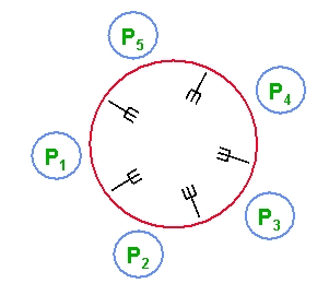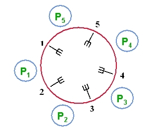 public class Dinner{ public static void main(String arg[]){ int number=5; Fork fk[]= new Fork[number]; for(int i=0;i<number;i++){ fk[i]= new Fork("fork "+i); } for(int i=0; i<number;i++){ new Philosopher("P"+(i+1),fk[i],fk[(i+1)%number]); } } } |